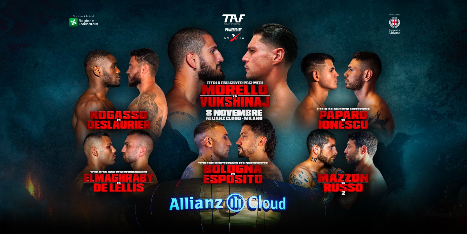 Sabato 8 novembre, l’Allianz Cloud di Milano ospiterà l’11° “episodio” del progetto The Art of Fighting (TAF). In totale otto match di boxe professionistica con ben quattro titoli in palio, a partire dalla cintura dei medi EBU Silver.