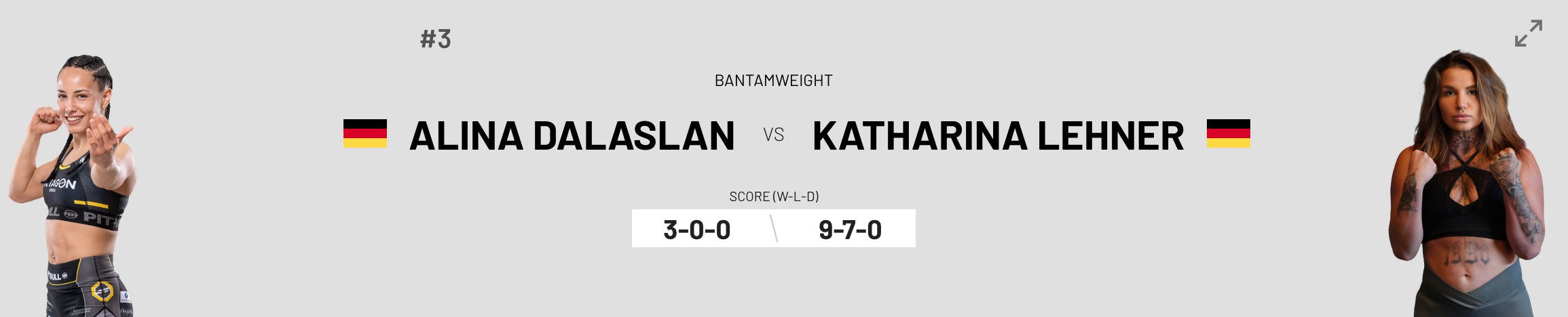 Prova di maturità infine per la tedesca Alina Dalaslan (3 vittorie su 3) che affronterà l’esperta connazionale Katharina Lehner (9-7-0). Nell’ultima prova, contro una rivale francese a Francoforte, ha vinto con un backfist elbow vincendo anche il bonus di 5mila euro per il gesto tecnico della serata. Un nuovo successo la proietterebbe come una degli astri nascenti della promotion ceca.