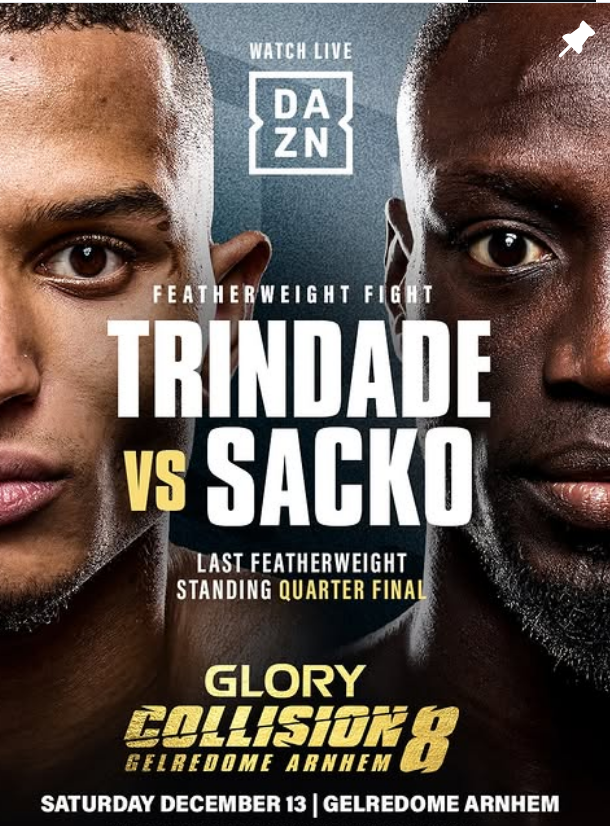 Nel frattempo Trindade è andato avanti in Glory – “Featherweight Fight” e il prossimo 13 dicembre è atteso da un’altra icona di questo sport, il 37enne veterano francese Bobo Sacko (#BS7), forte di uno score record di tutto rispetto (79-6-1, di cui 30 per K.O.). Si entra nei quarti di finale del torneo (all’interno di Collision 8), al Gelredome di Arnhem sempre in Olanda. Sacko è un esperto kickboxer, è molto alto (1:82), è veloce ed è in grado di sfruttare al massimo l’agilità delle gambe.