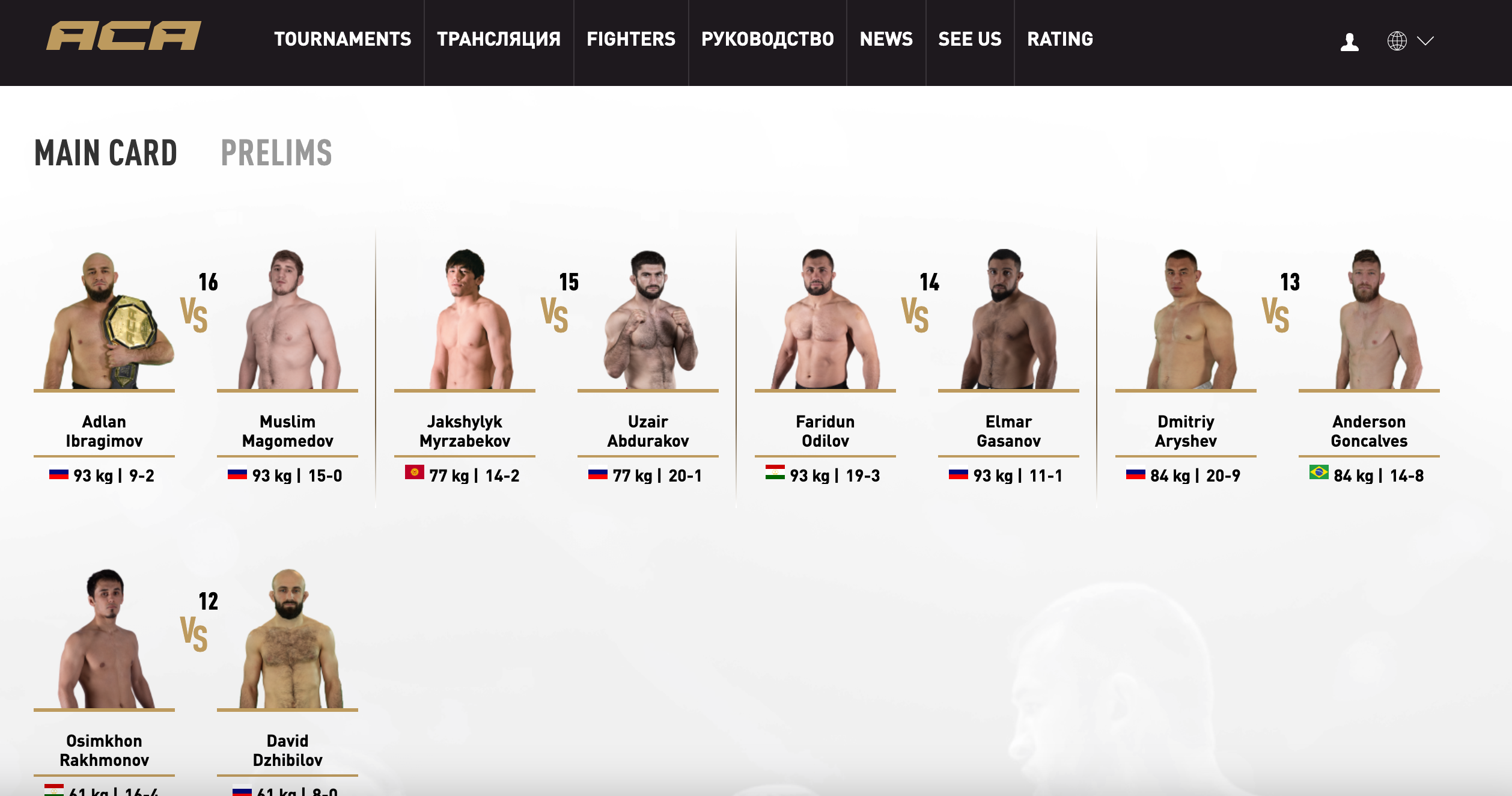 MMA – ACA #197 fa tappa a Mosca il prossimo 5 dicembre. Evento di chiusura del 2025.