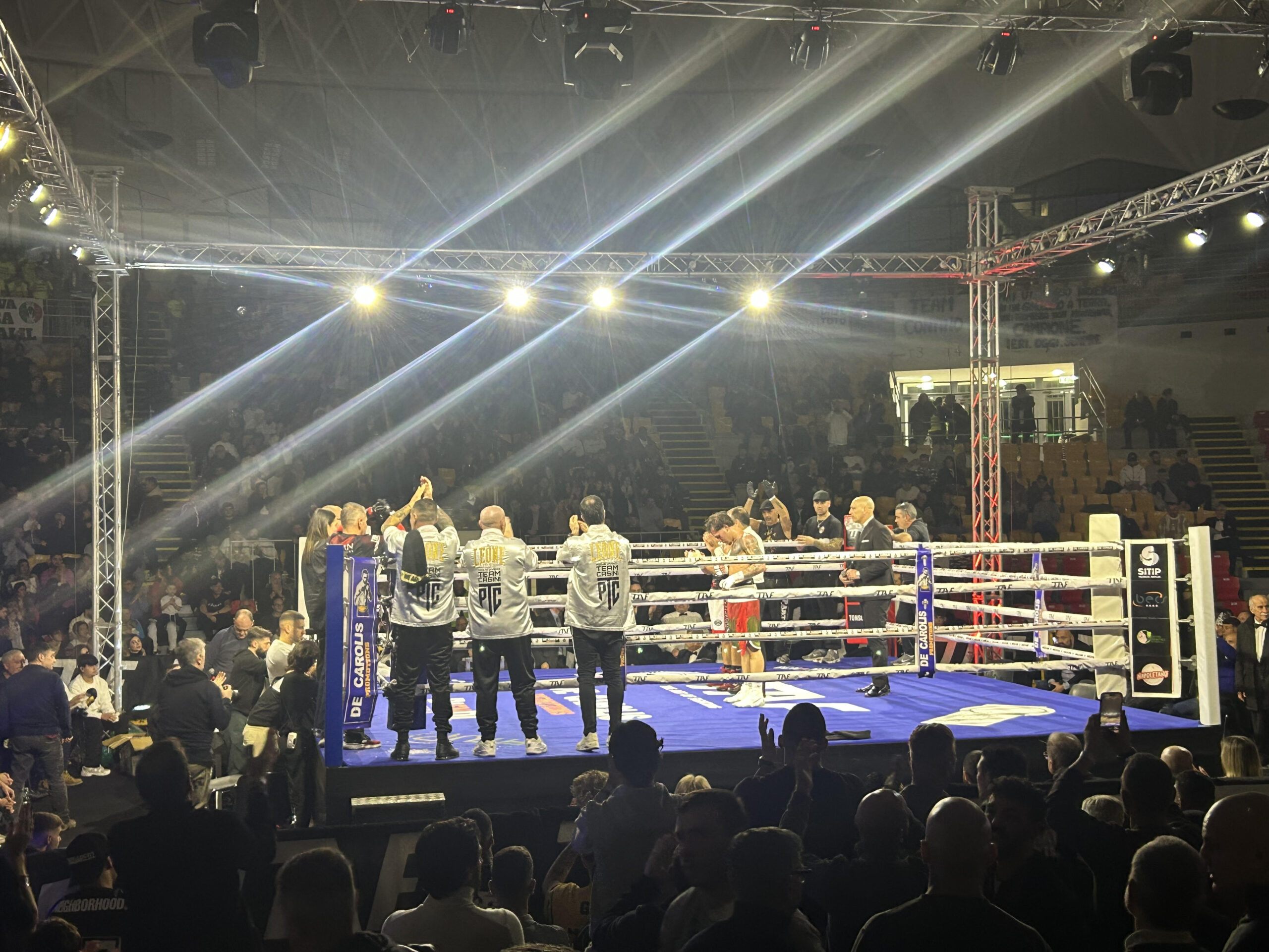Nel main event (pesi gallo), Mauro Forte ha dimostrato maturità, continuità e qualità, imponendo ritmo e precisione per tutta la durata del match contro Salvatore Contino. L’incontro si è chiuso tra la 9ª e la 10ª ripresa, quando proprio Contino è stato costretto al ritiro per un problema alla spalla. Fino a quel momento Forte stava conducendo il match lavorando bene sia in fase di pressione, sia durante le ripartenze.