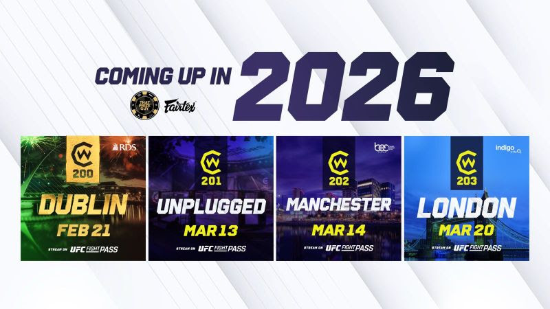 Con Cage Warriors #200 è in arrivo una speciale celebrazione di tutto ciò che ha reso questa organizzazione (irlandese) così popolare negli ultimi due decenni e mezzo di attività. In cima al cartellone, in programma il prossimo 21 febbraio a Dublino, ci sono due match titolati con un forte interesse per i fan irlandesi: il beniamino locale infatti Solomon Simon cercherà di difendere il suo titolo mondiale dei pesi piuma, conquistato di recente, contro lo sfidante numero uno, l’inglese Nik Bagley, mentre il nord-irlandese Paddy McCorry proverà a detronizzare il campione dei pesi medi il livornese Dario Bellandi, detentore della cintura da oltre un anno. Tra l’altro l’unico italiano, in questo momento, detentore di una cintura titolata in “CW”.