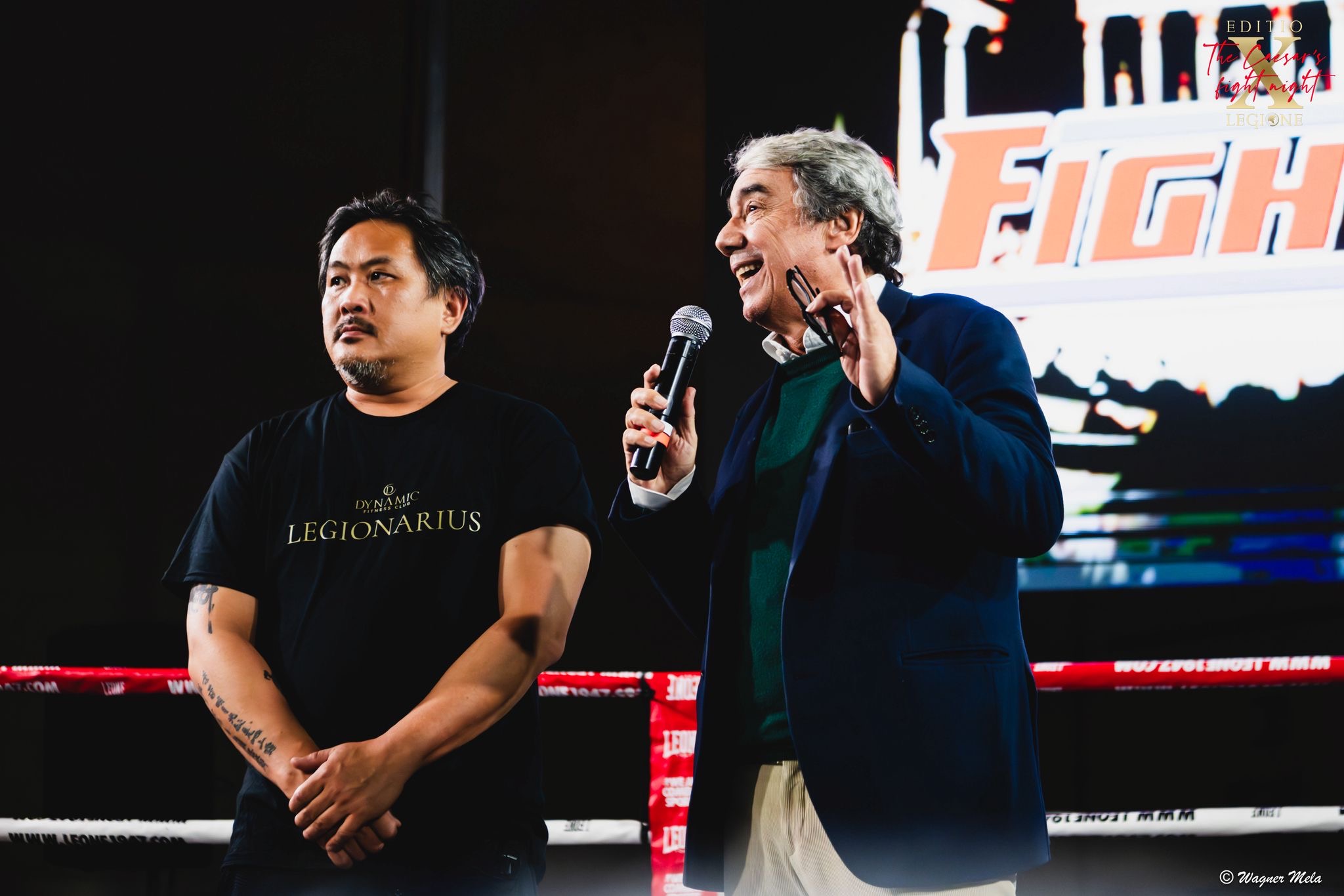 Il promoter lombardo vietnamita Chang Gong Mong (a sx.) assieme al presidente di FIGHT1 Carlo Di Blasi (a dx.) – credit photo Wagner Mela.
