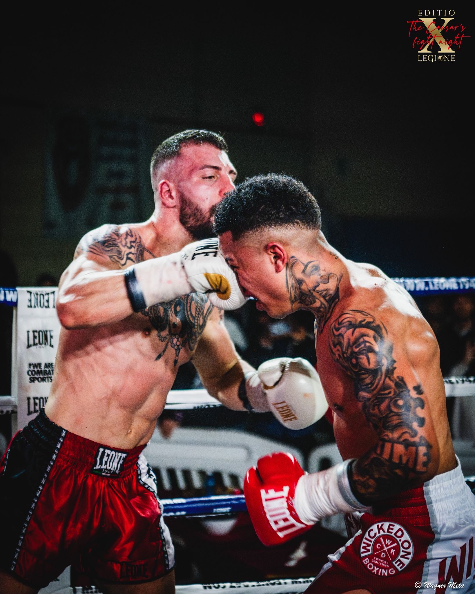 Nel main event Luigi “The Spinning Top” Saraco ha vinto il titolo tricolore FIGHT1 PRO (kickboxing – fino a 70 kg.) impostando una vera e propria “battaglia” senza filtri ed esclusione di colpi con l’opponent Ouassim Touzi, favorito del match e beniamino locale. Il fighter di Brandizzo non è nuovo a successi. In “IX Legione-Anger Fight Night”, già due anni fa, aveva vinto per TKO al R2 (lo scorso 26 ottobre 2024) contro Zbair Othamane. Questa volta ha piegato Touzi, che, fino a poche battute dalla fine del match, era dato per possibile vincente.
