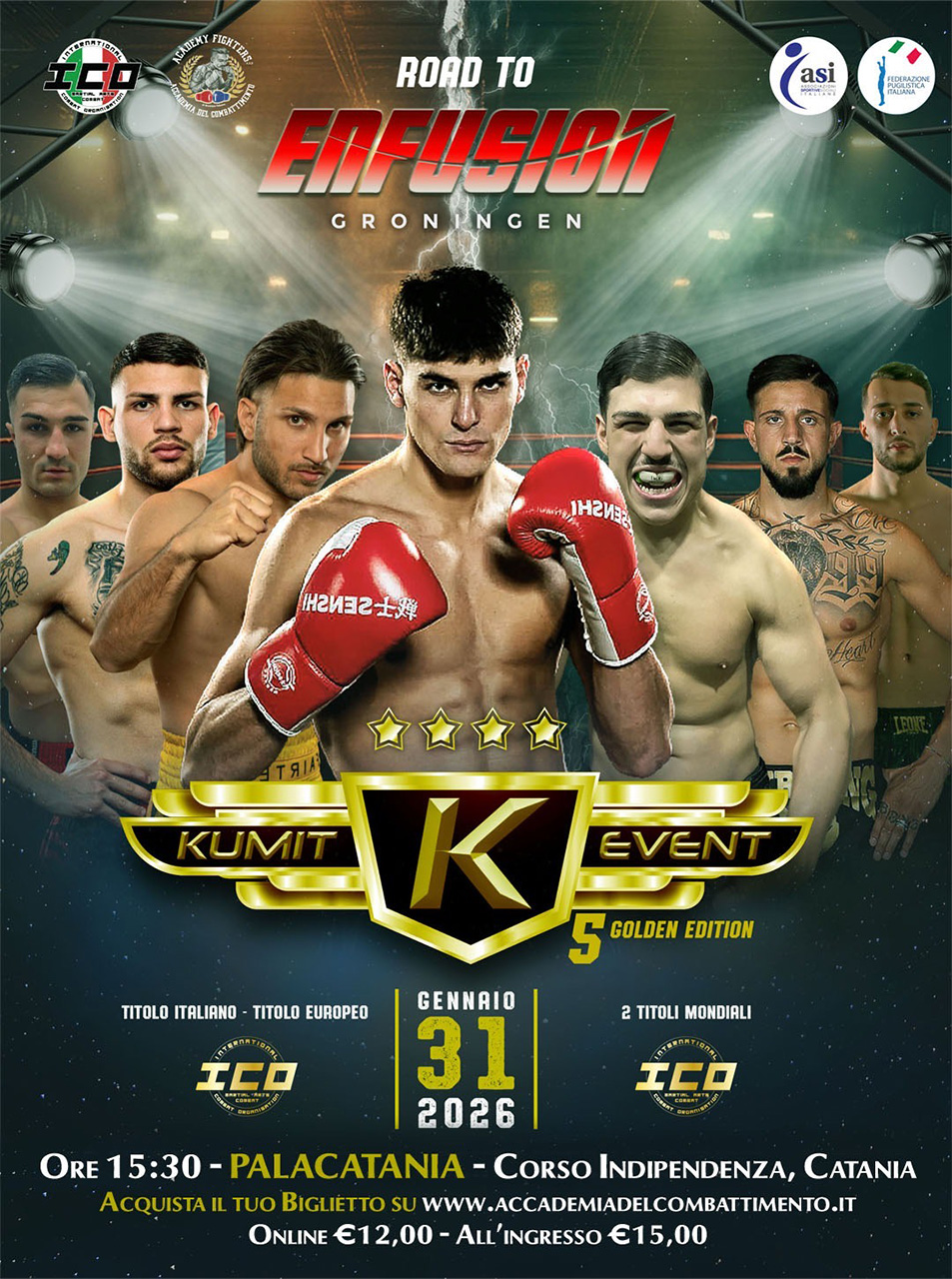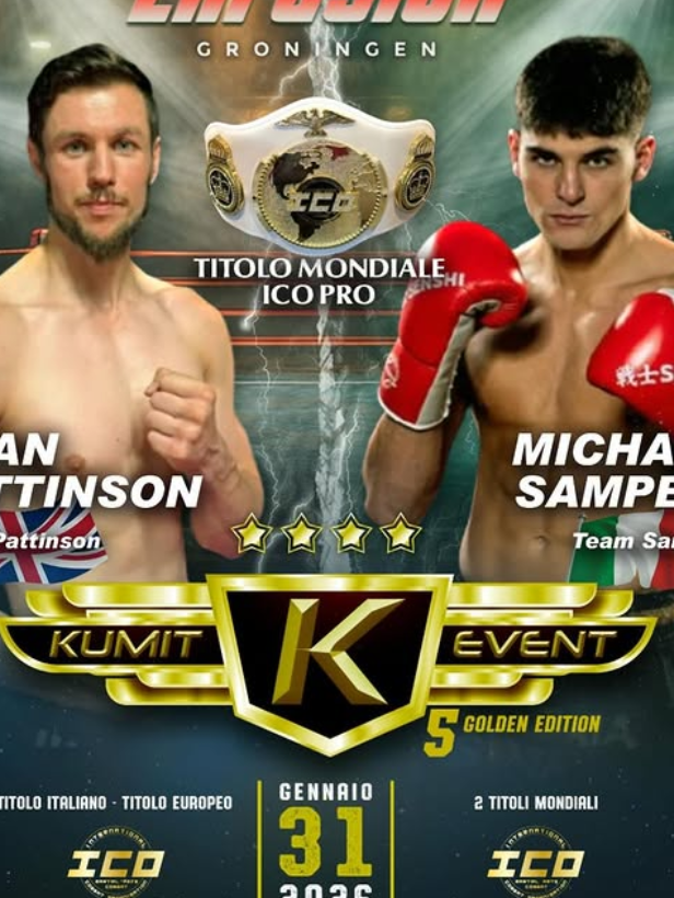 In poco meno di due settimane Michael Samperi, 25enne kickboxer taorminese, ha conquistato, proprio nella sua Sicilia (al PalaCatania), il titolo mondiale ICO (l’acronimo sta per “International Combat Organisation”) “Pro”-K-1 (nella categoria di peso 78,5 kg.) contro il britannico Dean Pattinson, n.1, nella medesima specialità, nel suo Paese. La serata (lo scorso 31 gennaio 2026) faceva parte del format KumitEvent Gold Edition “V” / “Road to Enfusion” Groningen.