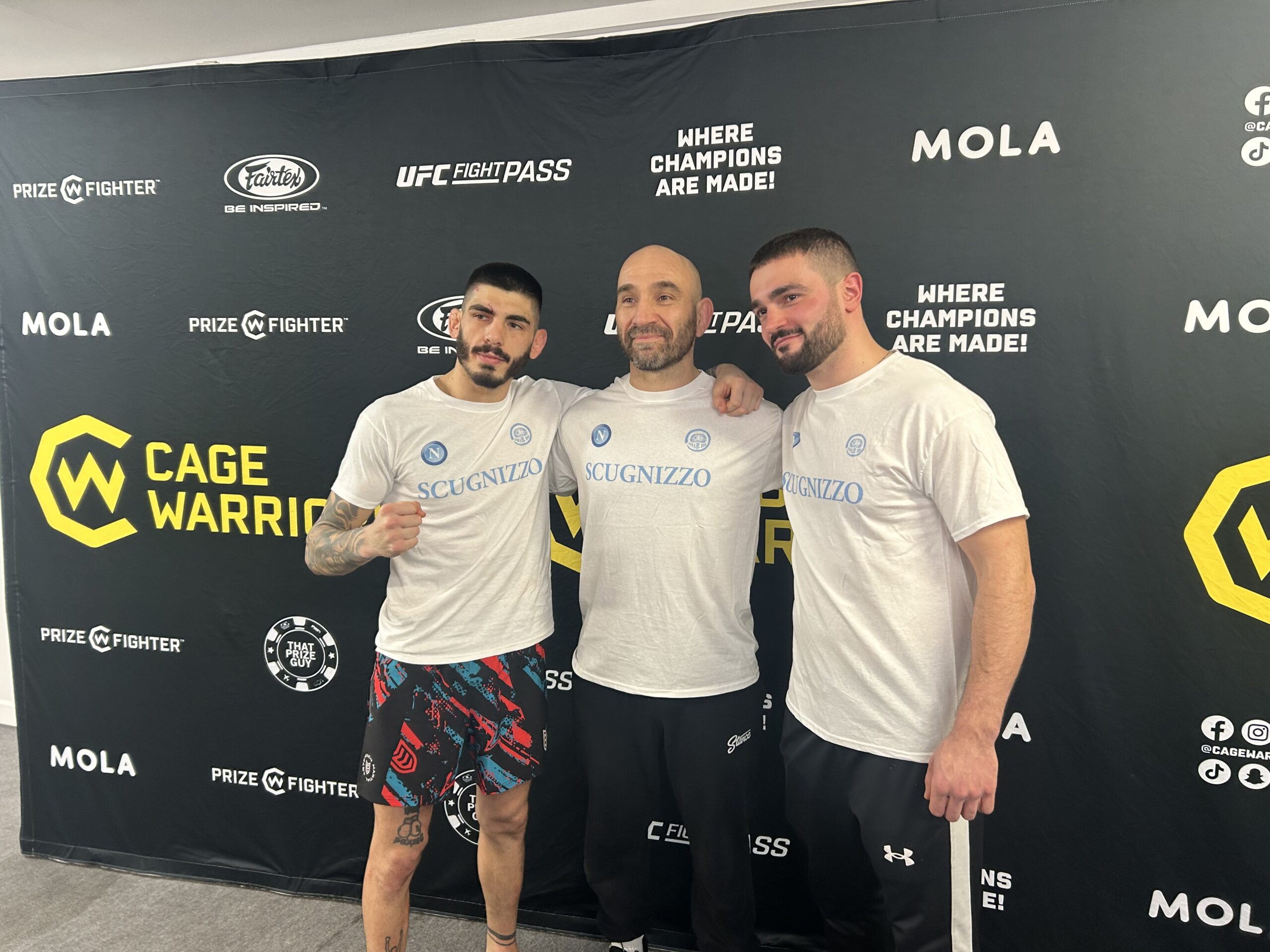 R: Come tutti i fighter di mma sogno la UFC, ma bisogna guardare in faccia la realtà e credo sia necessario proseguire con altri match per potenziare il mio score record. Certo mi piacerebbe combattere a Roma (il prossimo appuntamento capitolino di CW sarà il prossimo 11 aprile al Pala Pellicone di Ostia, ndr). Certamente nel mio percorso di crescita è stato fondamentale l’incontro con il mio staff tecnico, con Lorenzo Borgomeo così come i due anni di esperienze fatte proprio a Dublino alla palestra dove è nato il mito di Conor McGregor la Straight Blast Gym (SBG), dove c’è il suo allenatore storico: John Kavanagh. Mi sono messo in gioco appunto lavorando sia in Irlanda e sia a Milano, una scelta obbligata perchè quando ho iniziato non c’erano palestre di livello sul territorio campano in grado di fare crescere un fighter con ambizioni da “pro”.