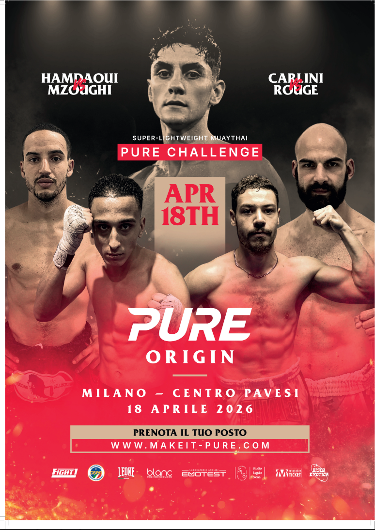 Gli eventi in programma saranno nei mesi di aprile, giugno e settembre 2026. “Pure Origin” – in programma il 18 aprile al Centro Pavesi di Milano – ha raccolto 20 atleti su 5 categorie nella fase dei quarti di finale. In aggiunta, si svolgeranno “Super Fights” d’eccezione con atleti di alto livello internazionale, per un totale di 14 incontri.