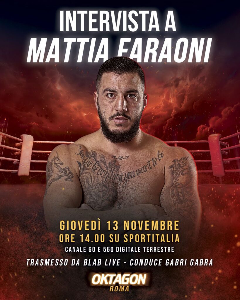 Cresce la febbre in vista di Oktagon Roma, in programma al Pala Pellicone di Ostia, il prossimo sabato 29 novembre. E il suo maggiore atleta-icona, il kickboxer romano Mattia Faraoni è atteso questo pomeriggio (a partire dalle ore 14:00) da una nuova sfida, questa volta, però, in campo televisivo, su Sportitalia (canale 60 e 560 …