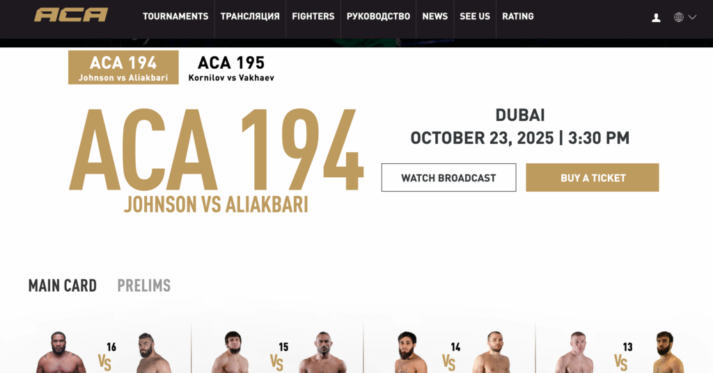 Il prossimo 23 ottobre (dalle 15:30), il torneo ACA (Absolute Championship Akhmat) #194 si svolgerà all’interno della The Agenda Arena di Dubai (UAE). Nel main event della serata, l’ex campione dei pesi massimi (120 kg di peso entrambi), il texano Tony Johnson (con esperienze significativa in Kings of Cage, Bellator e One Championship prima di …