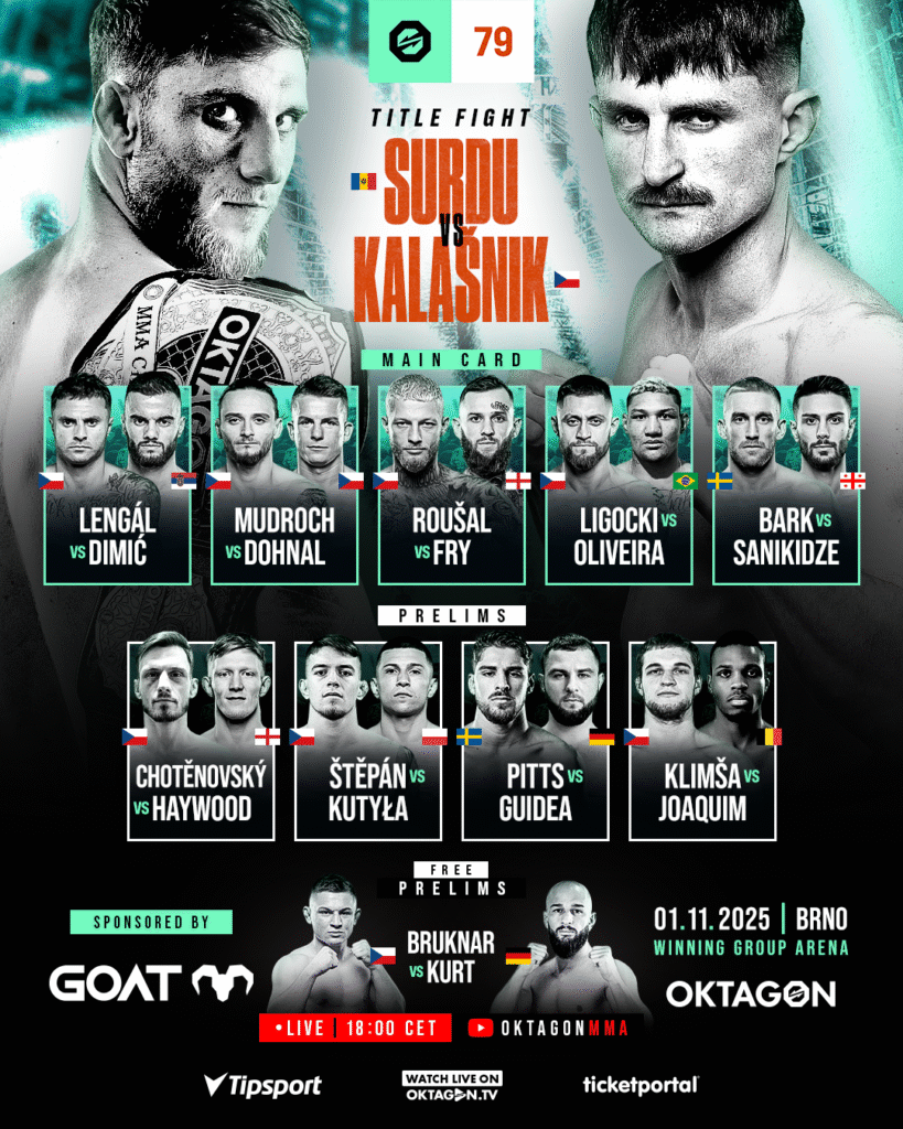 Oktagon torna questo sabato, 1° novembre, nella città ceca di Brno con un evento ricco di match spettacolari. La Winning Group Arena ospiterà Oktagon #79, che segnerà anche il 1000imo incontro nella storia della promotion – un altro traguardo importante per l’organizzazione.Il titolo dei pesi welter sarà in palio nel main event: un atleta di casa punta …