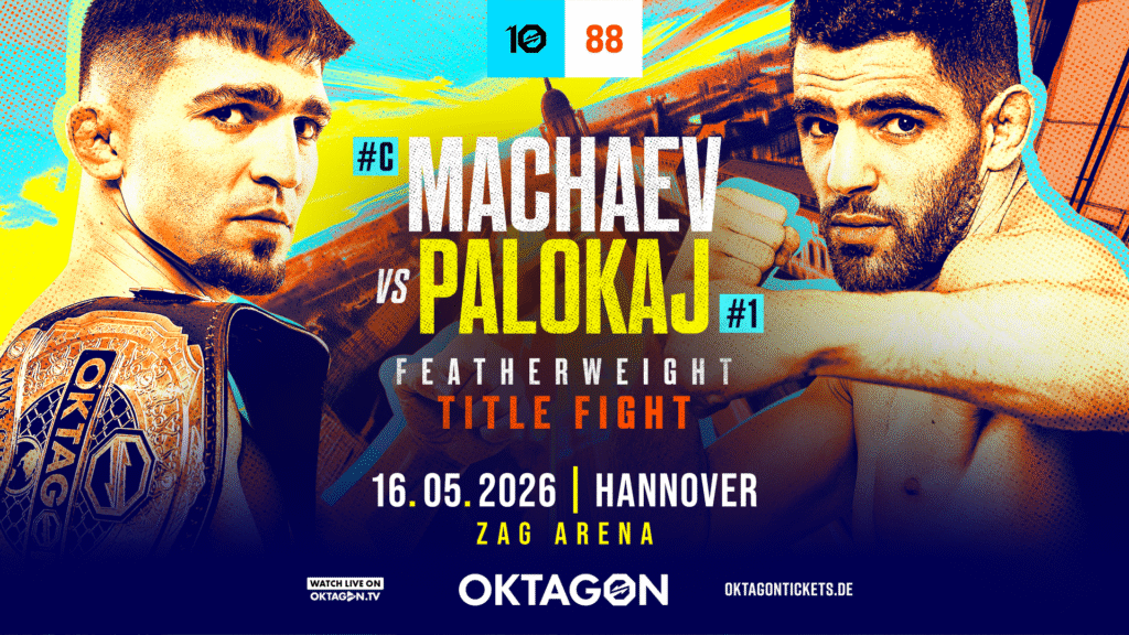 Uno scontro epico per il titolo dei pesi "piuma" arriverà ad Hannover (in Germania) questa primavera. Il fenomeno in ascesa, Mago Machaev (17-2, 1NC), metterà in palio per la prima volta la sua cintura contro il favorito di casa, il beniamino locale Gjoni Palokaj (13-3), a Oktagon #88 sabato 16 maggio 2026. La ZAG Arena …